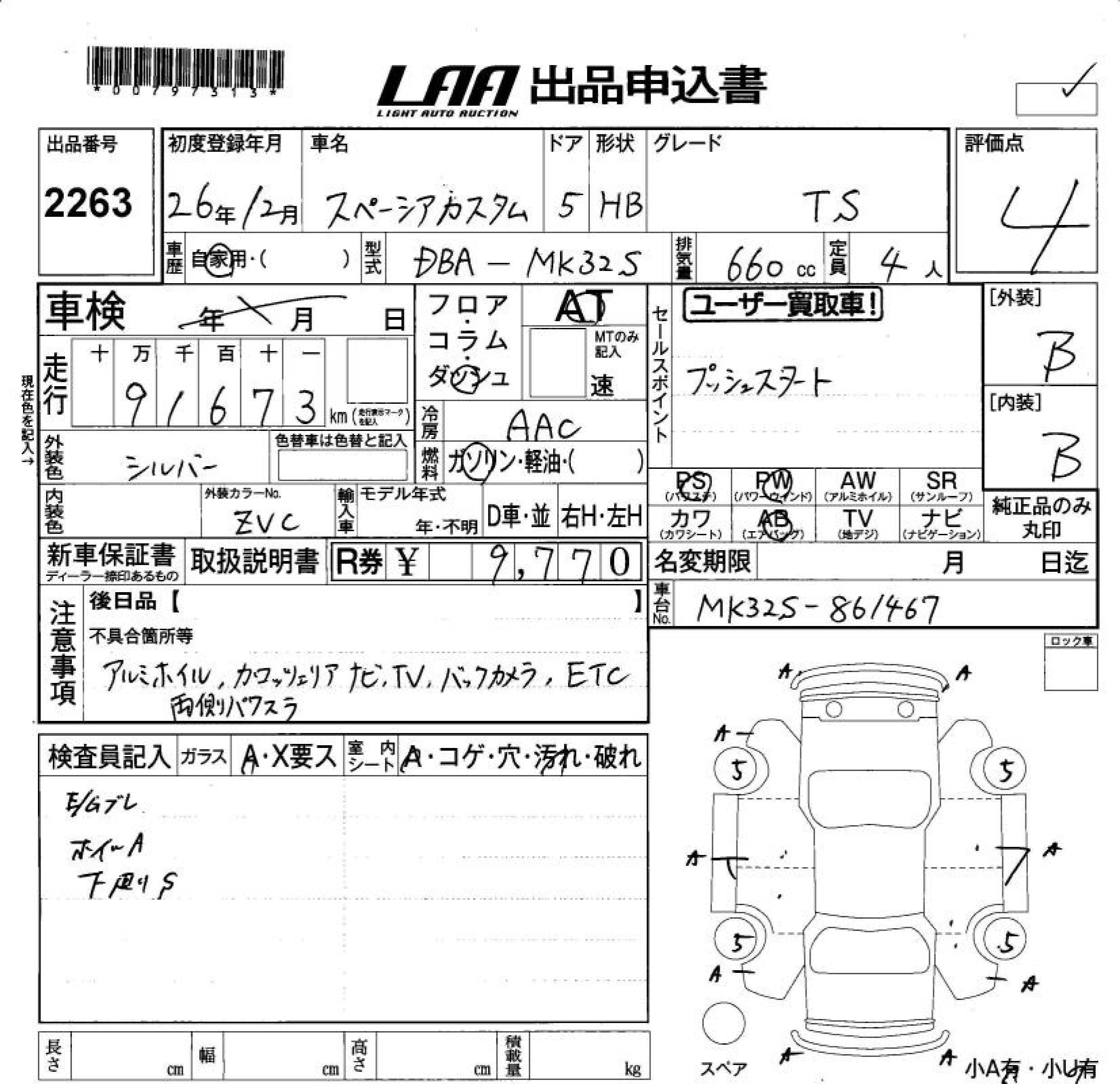 SUZUKI SPACIA CUSTOM TS - лот 2263