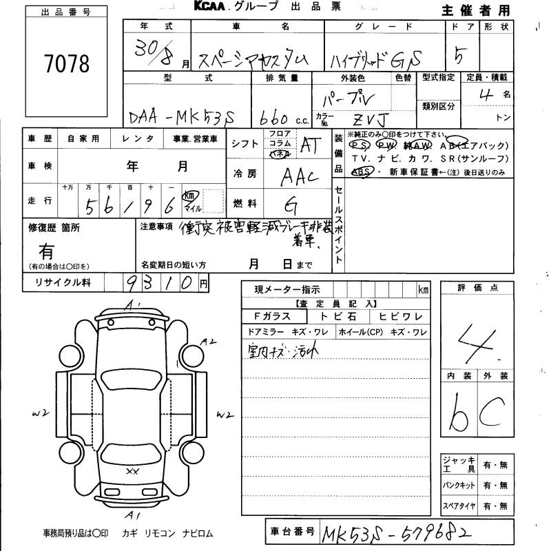 SUZUKI SPACIA CUSTOM HYBRID GS - лот 7078