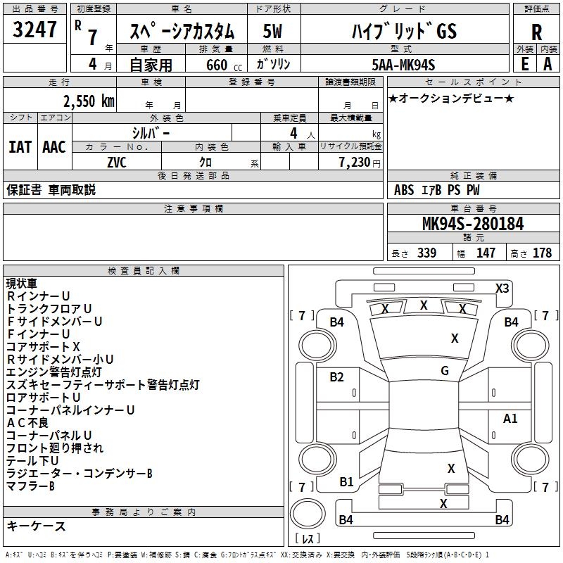 SUZUKI SPACIA CUSTOM HYBRID GS - лот 3247