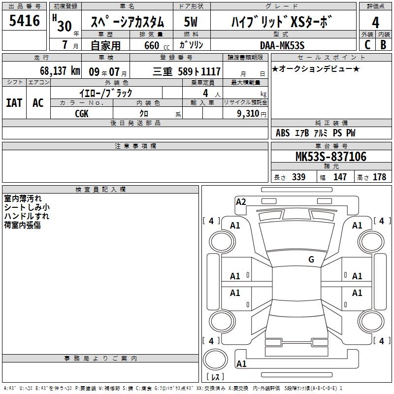 SUZUKI SPACIA CUSTOM HYBRID XS TURBO - лот 5416