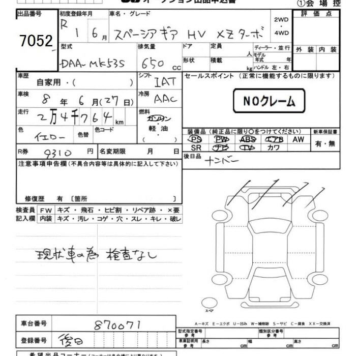 SUZUKI SPACIA GEAR - лот 7052