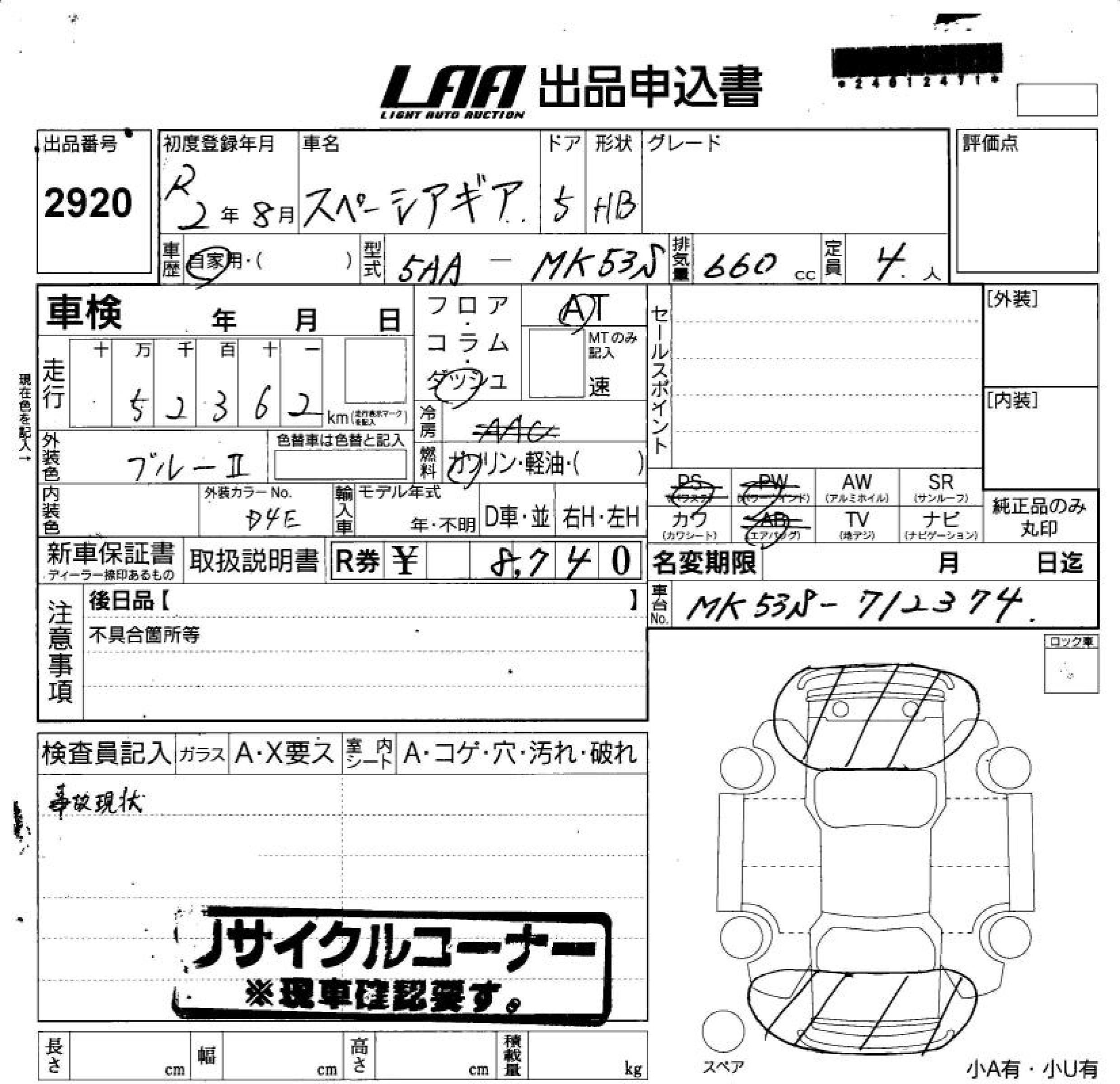 SUZUKI SPACIA GEAR - лот 2920