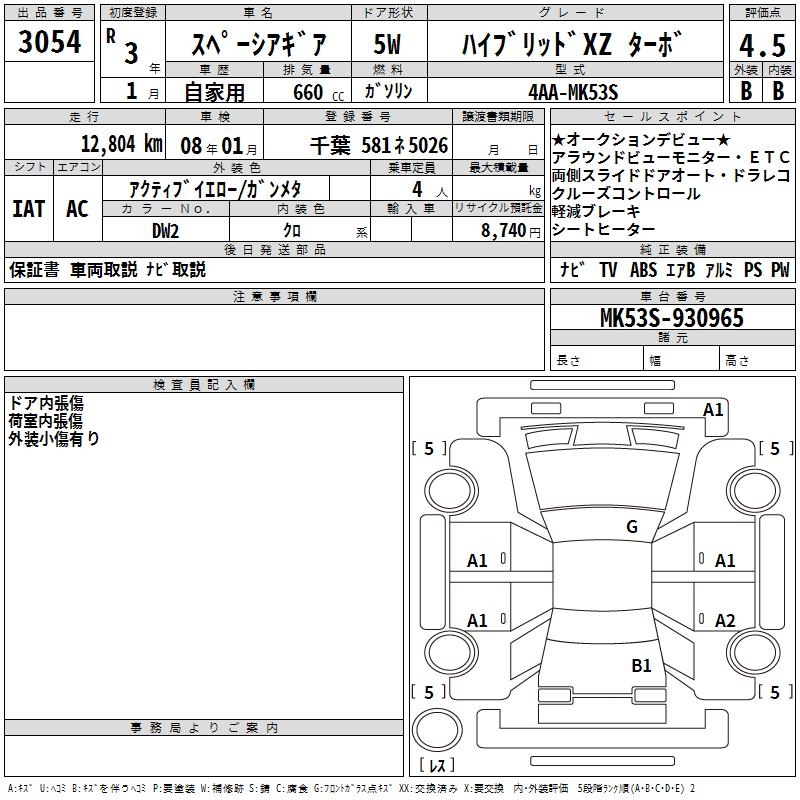 SUZUKI SPACIA GEAR HYBRID XZ TURBO - лот 3054