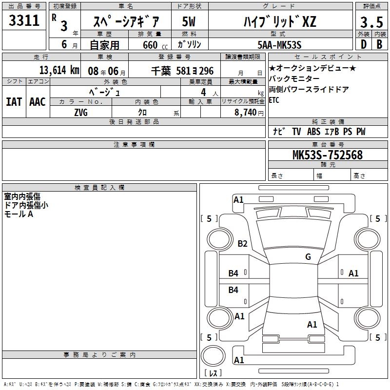 SUZUKI SPACIA GEAR HYBRID XZ - лот 3311