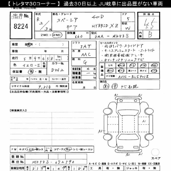 SUZUKI SPACIA GEAR 4WD HYBRID XZ - лот 8224