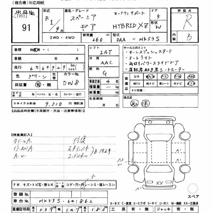 SUZUKI SPACIA GEAR HYBRID XZ SAFETY SUPPORT - лот 91