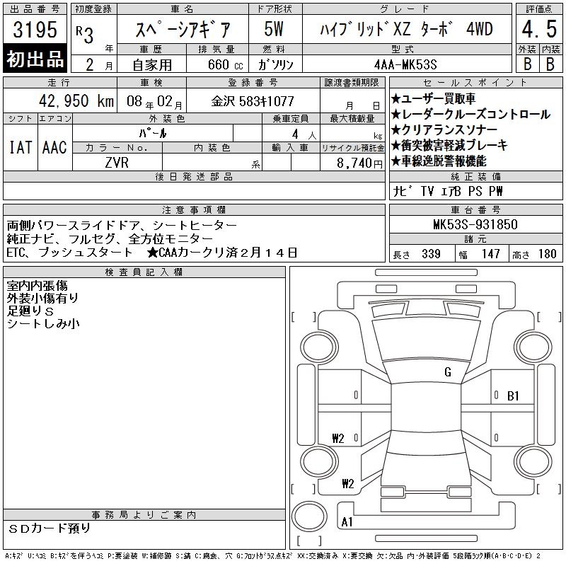 SUZUKI SPACIA GEAR HYBRID XZ TURBO 4WD - лот 3195