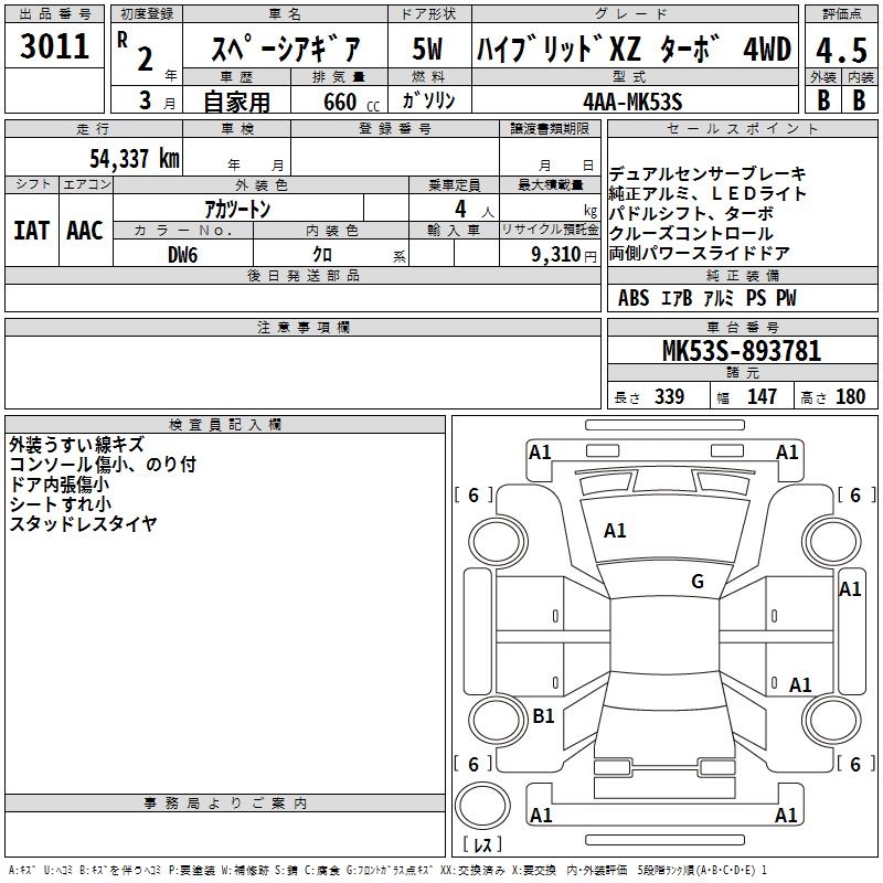 SUZUKI SPACIA GEAR HYBRID XZ TURBO 4WD - лот 3011