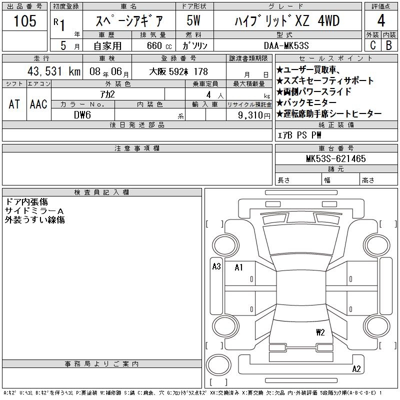 SUZUKI SPACIA GEAR HYBRID XZ 4WD - лот 105