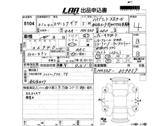 SUZUKI SPACIA GEAR - лот 5104