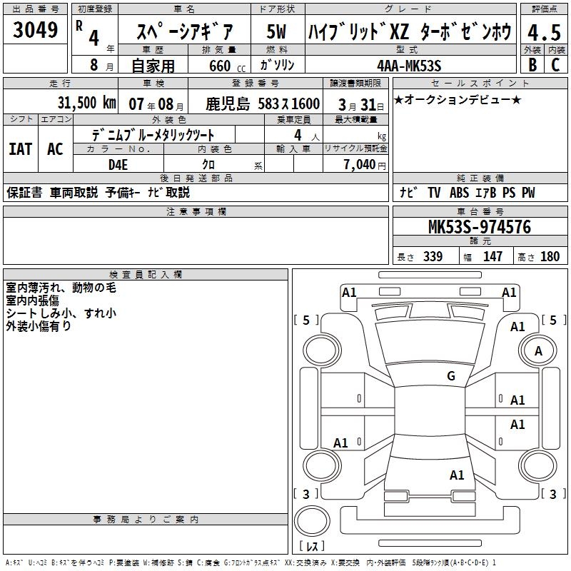 SUZUKI SPACIA GEAR HYBRID XZ TURBO ZEN HOWE - лот 3049