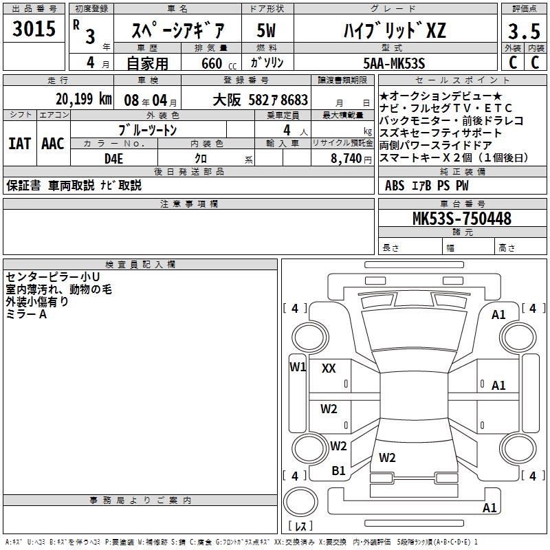 SUZUKI SPACIA GEAR HYBRID XZ - лот 3015