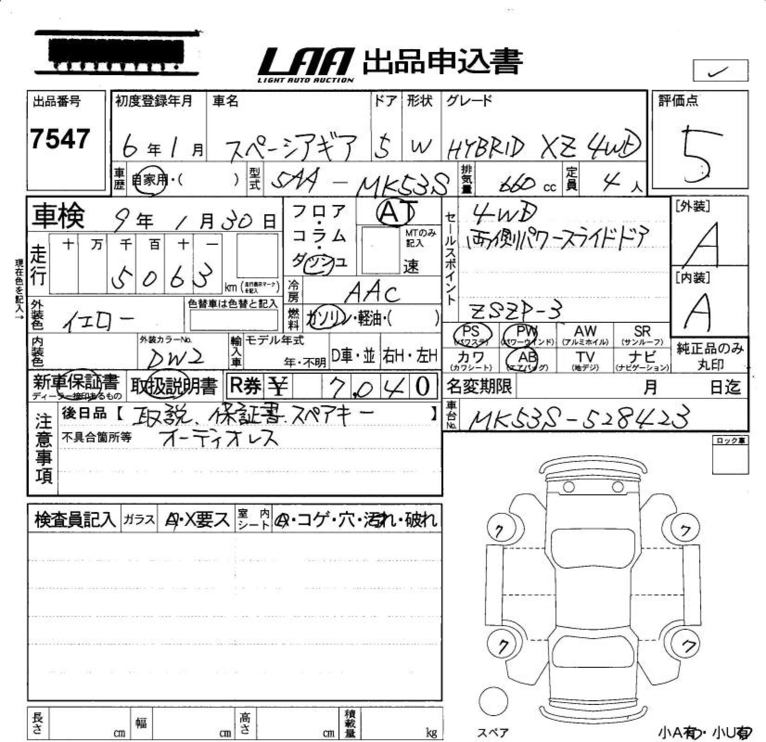 SUZUKI SPACIA GEAR HYBRID XZ 4WD - лот 7547