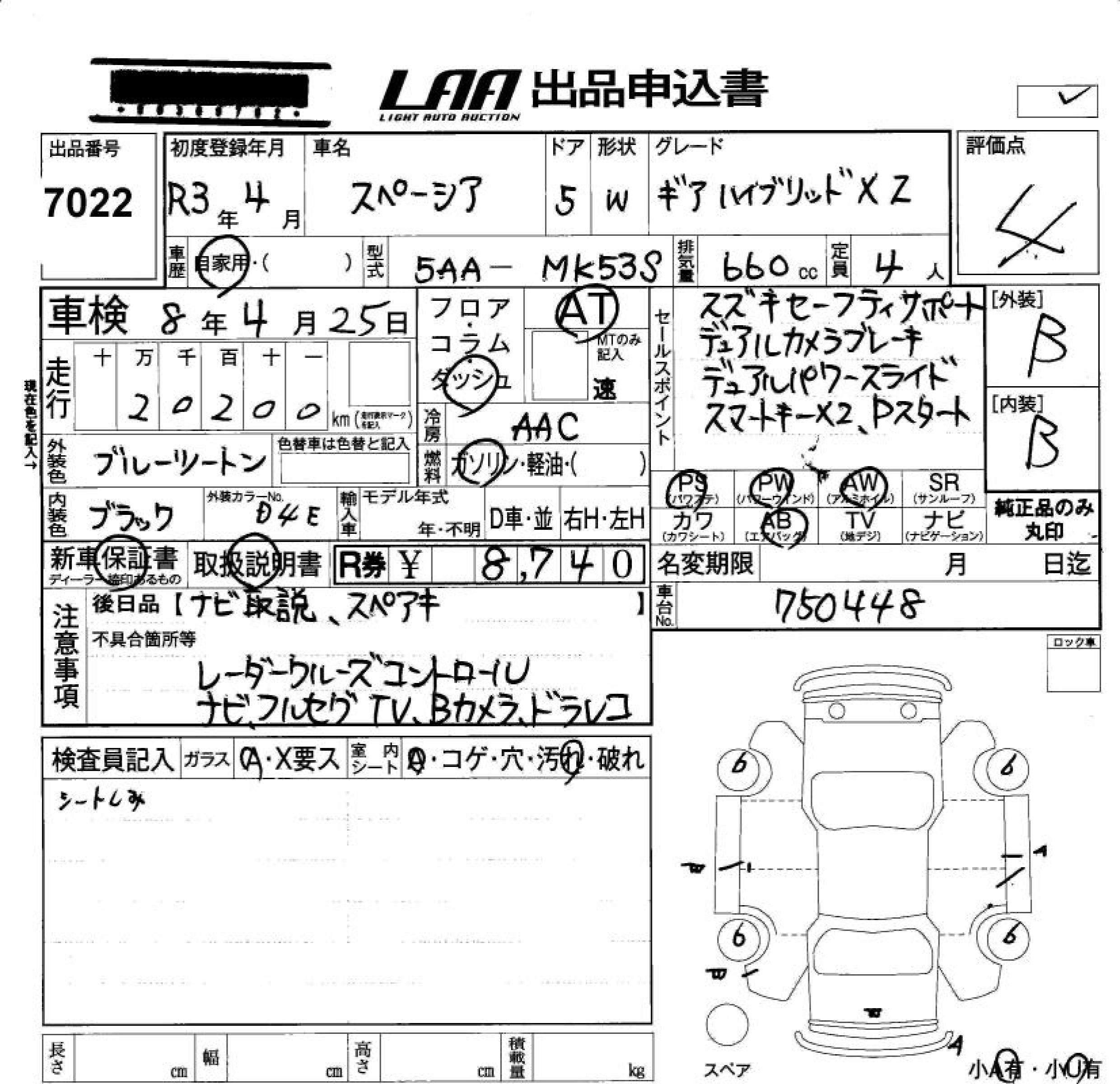 SUZUKI SPACIA GEAR HYBRID XZ - лот 7022