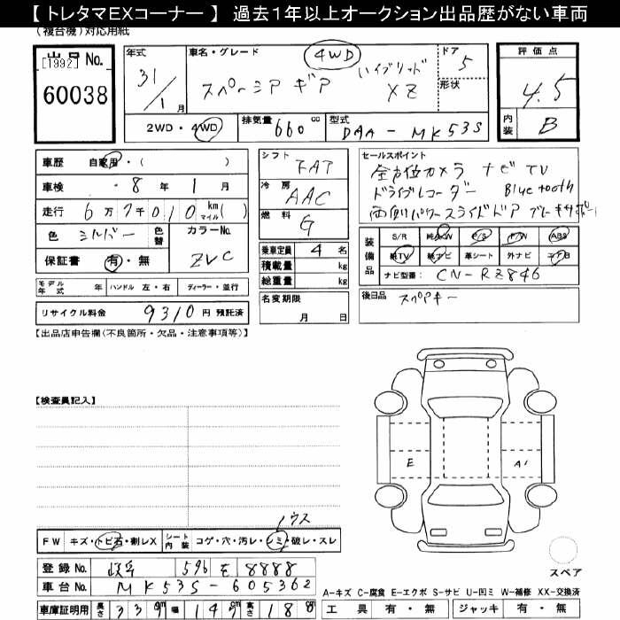 SUZUKI SPACIA GEAR 4WD HYBRID XZ - лот 60038
