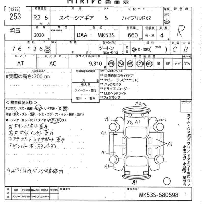 SUZUKI SPACIA GEAR 4WD HYBRID XZ - лот 253
