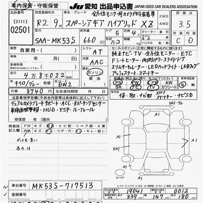 SUZUKI SPACIA GEAR HYBRID XZ - лот 2501