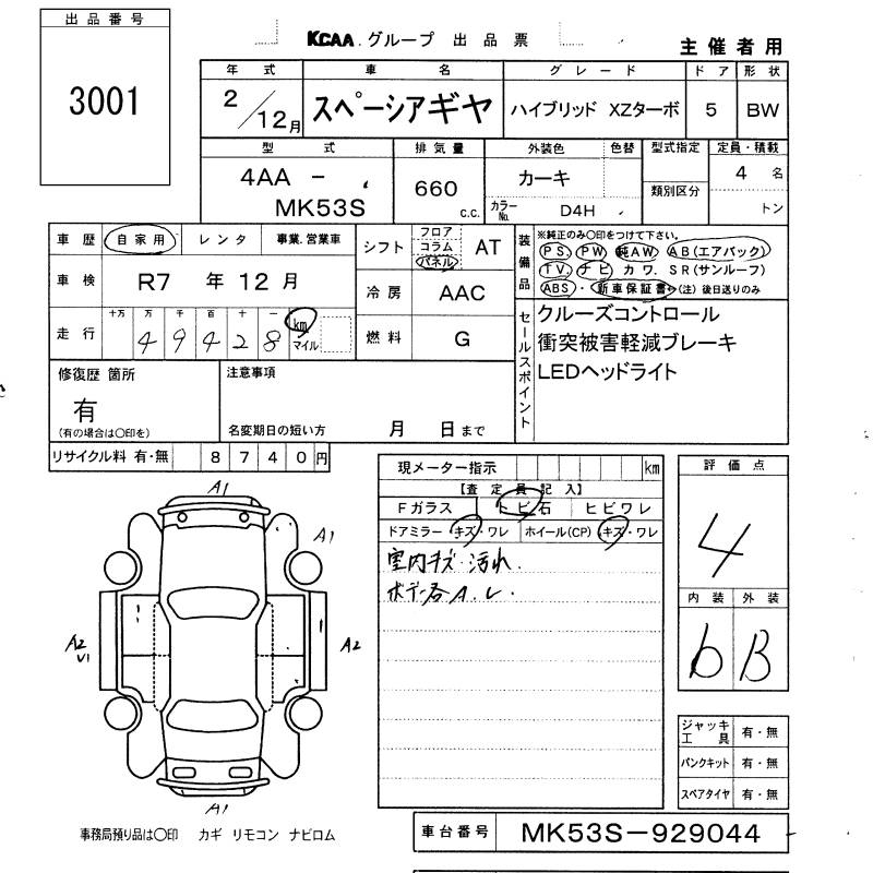 SUZUKI SPACIA GEAR HYBRID XZ TURBO - лот 3001