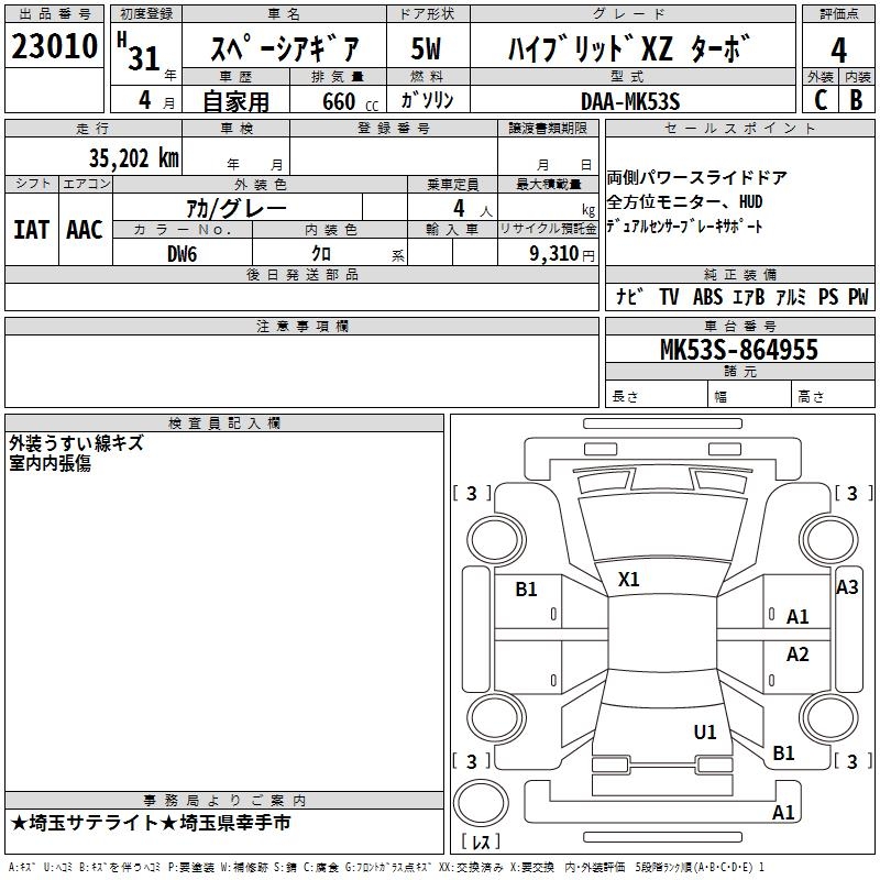 SUZUKI SPACIA GEAR HYBRID XZ TURBO - лот 23010