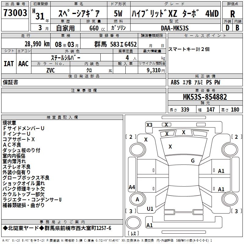 SUZUKI SPACIA GEAR HYBRID XZ TURBO 4WD - лот 73003