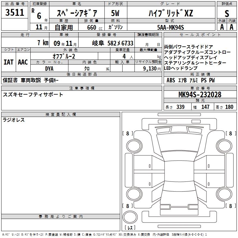 SUZUKI SPACIA GEAR HYBRID XZ - лот 3511
