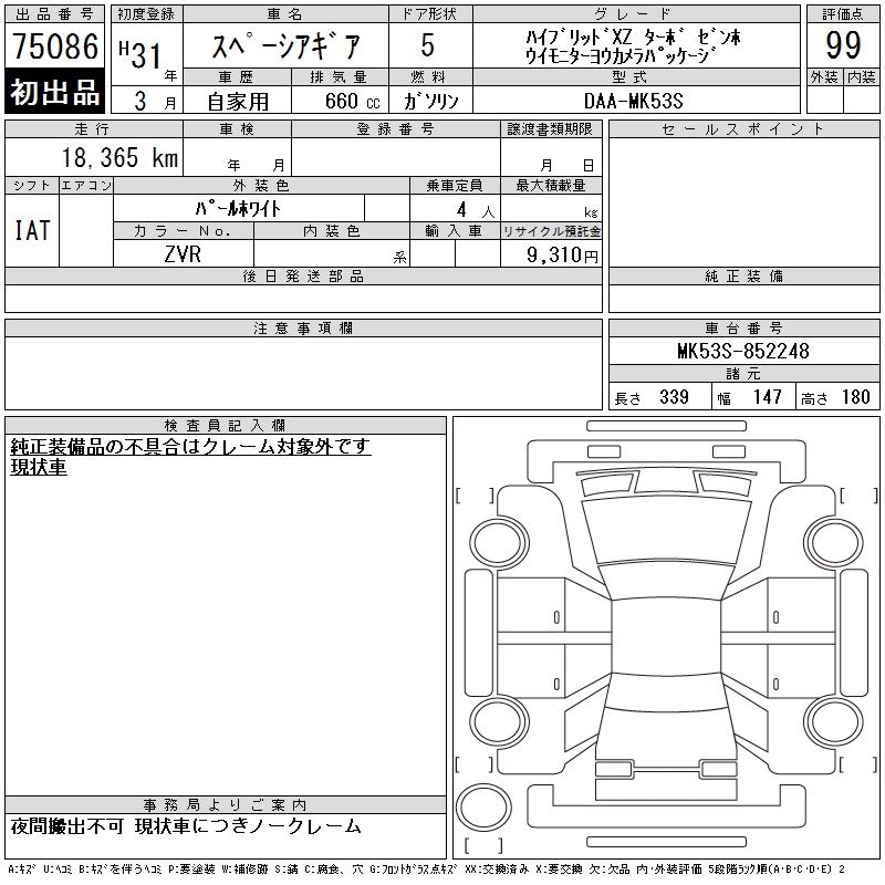 SUZUKI SPACIA GEAR HYBRID XZ TURBO ZEN HO - лот 75086