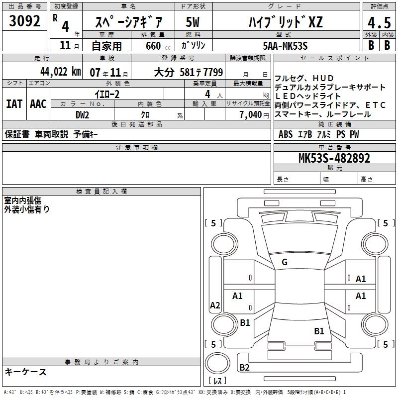 SUZUKI SPACIA GEAR HYBRID XZ - лот 3092