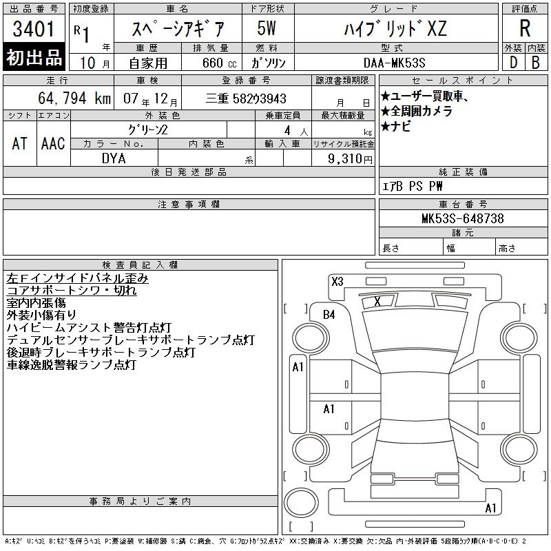SUZUKI SPACIA GEAR HYBRID XZ - лот 3401
