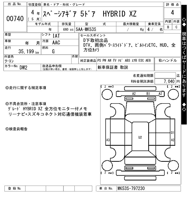 SUZUKI SPACIA GEAR HYBRID XZ - лот 740