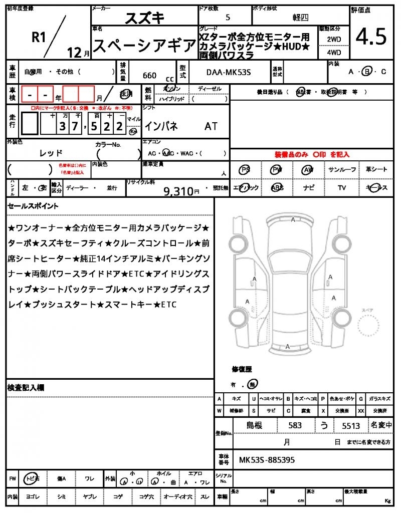 Все аукционы SUZUKI SPACIA GEAR