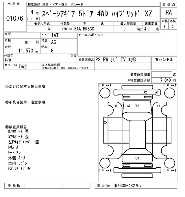 SUZUKI SPACIA GEAR HYBRID XZ - лот 1076
