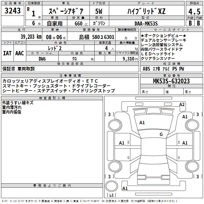 SUZUKI SPACIA GEAR HYBRID XZ - лот 3243