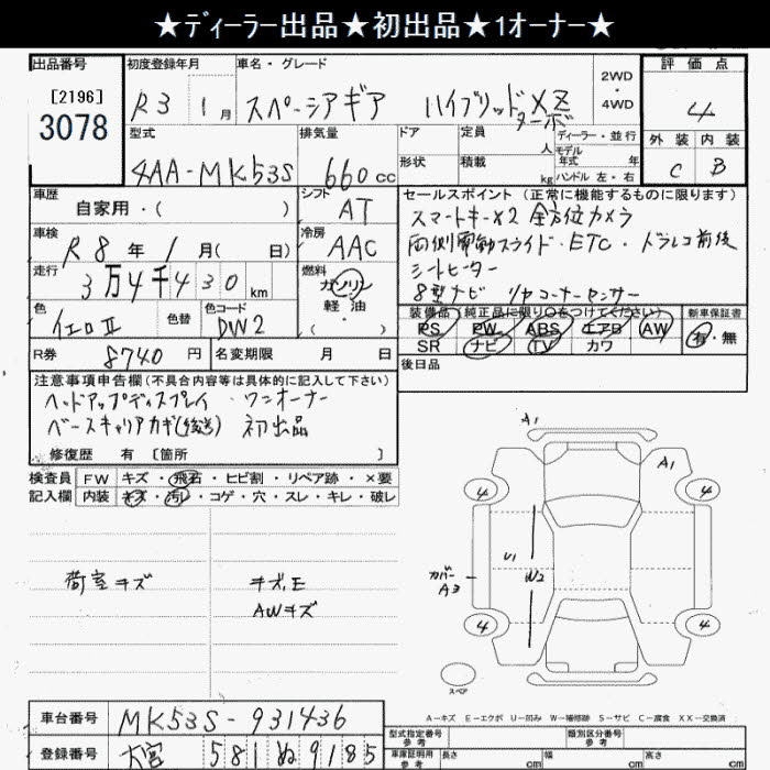 SUZUKI SPACIA GEAR HYBRID XZ TURBO - лот 3078