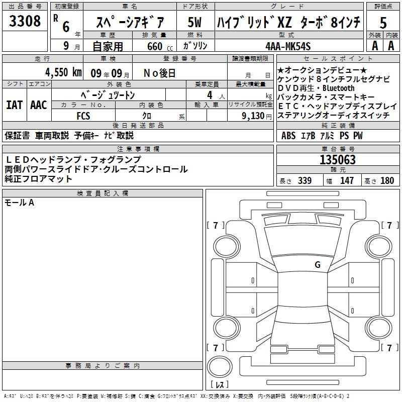 SUZUKI SPACIA GEAR HYBRID XZ TURBO 8 INCH - лот 3308