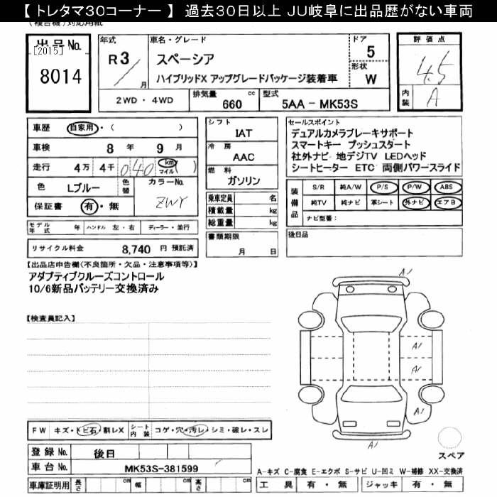 SUZUKI SPACIA HYBRID X UP GRADE PKGSOU TEA K CAR - лот 8014