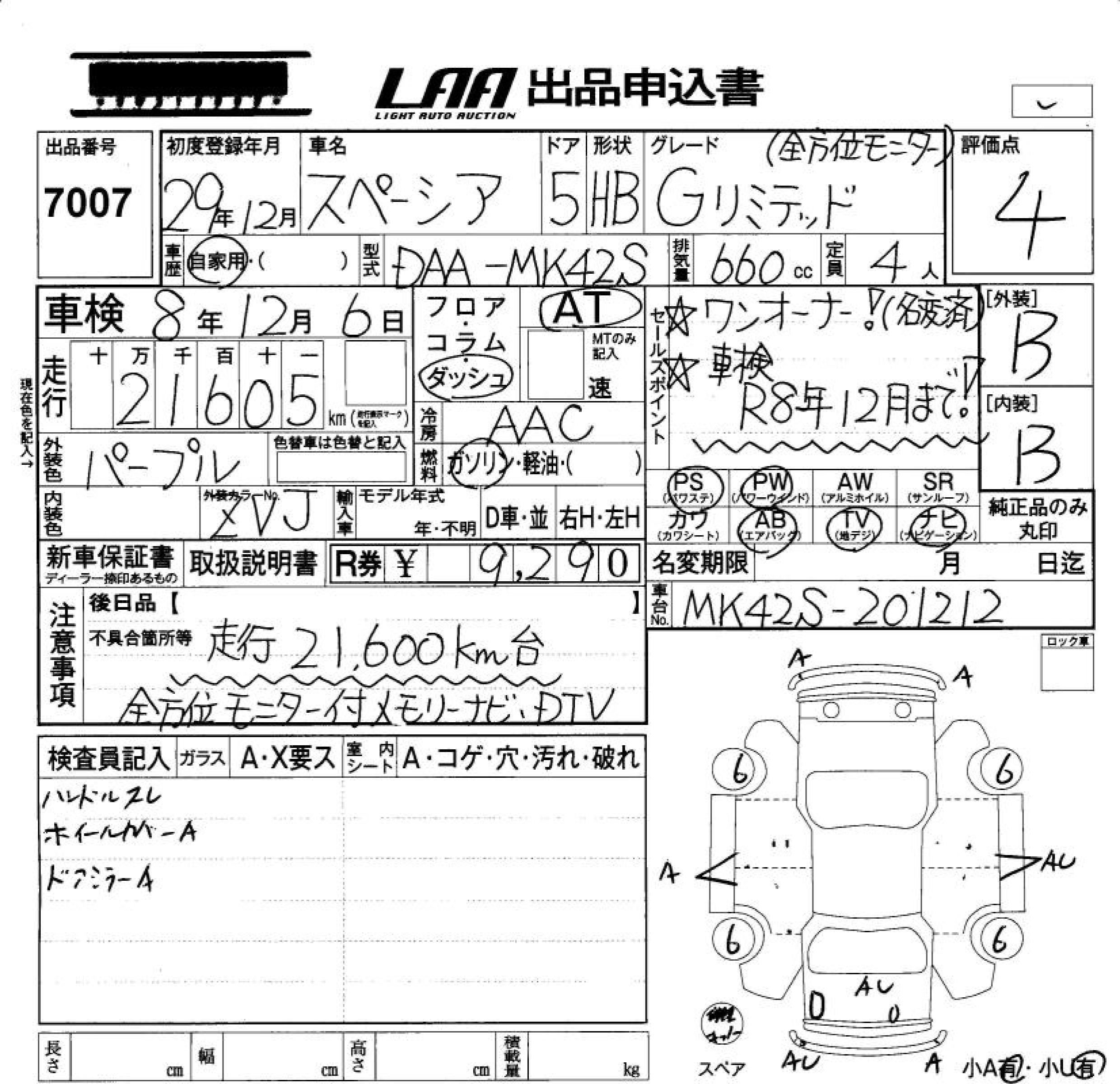 SUZUKI SPACIA G LIMITED ALL PERSON . MONITOR - лот 7007
