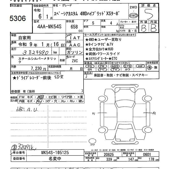 SUZUKI SPACIA 4WD CUSTOM HYBRID XS TURBO - лот 5306