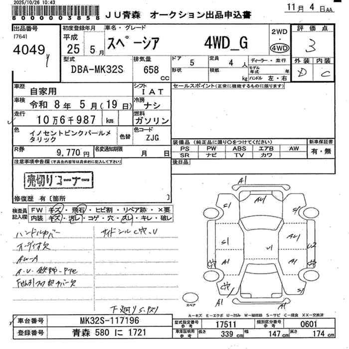 SUZUKI SPACIA 4WD G - лот 4049