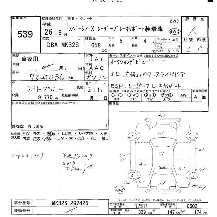 SUZUKI SPACIA 4WD X RADAR BRAKE SOU TEA K CAR - лот 539