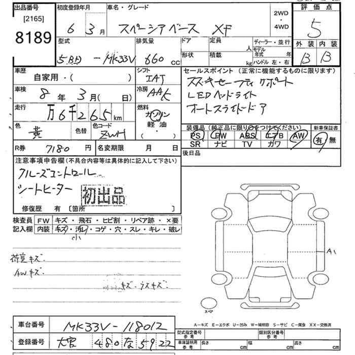 SUZUKI SPACIA BACE - лот 8189
