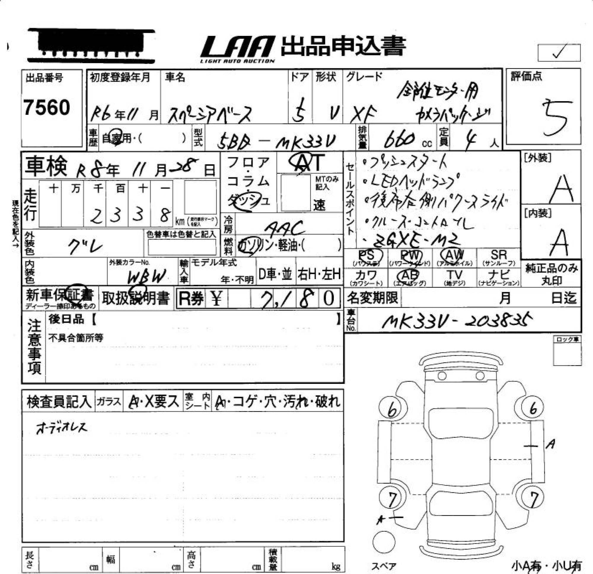 SUZUKI SPACIA BACE - лот 7560