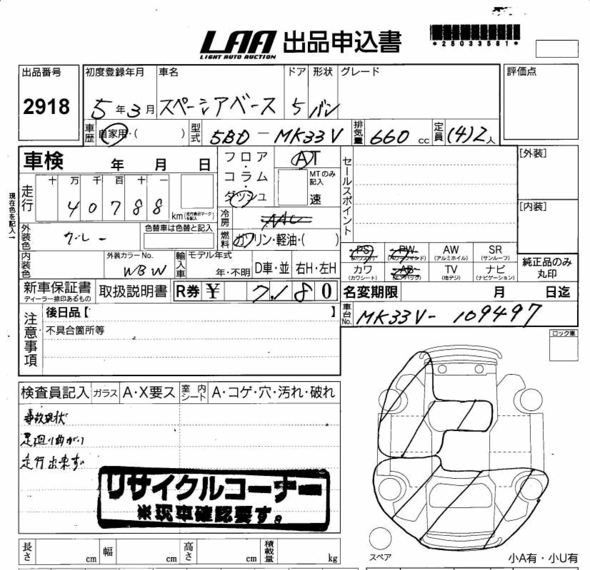SUZUKI SPACIA BACE - лот 2918