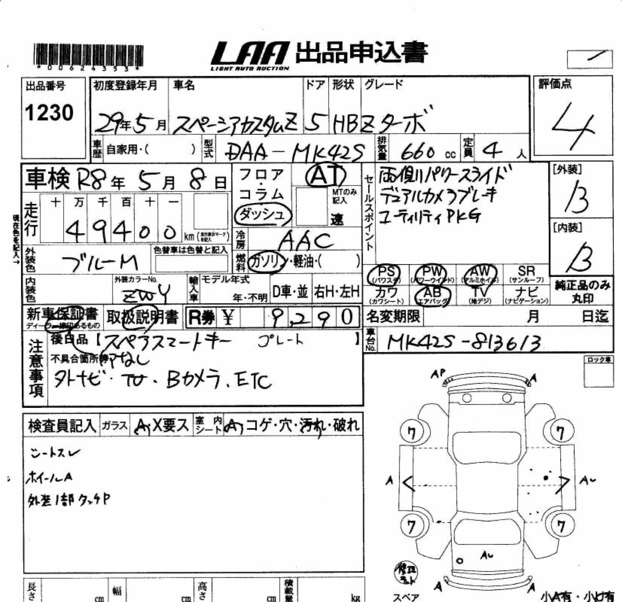SUZUKI SPACIA CUSTOM - лот 1230