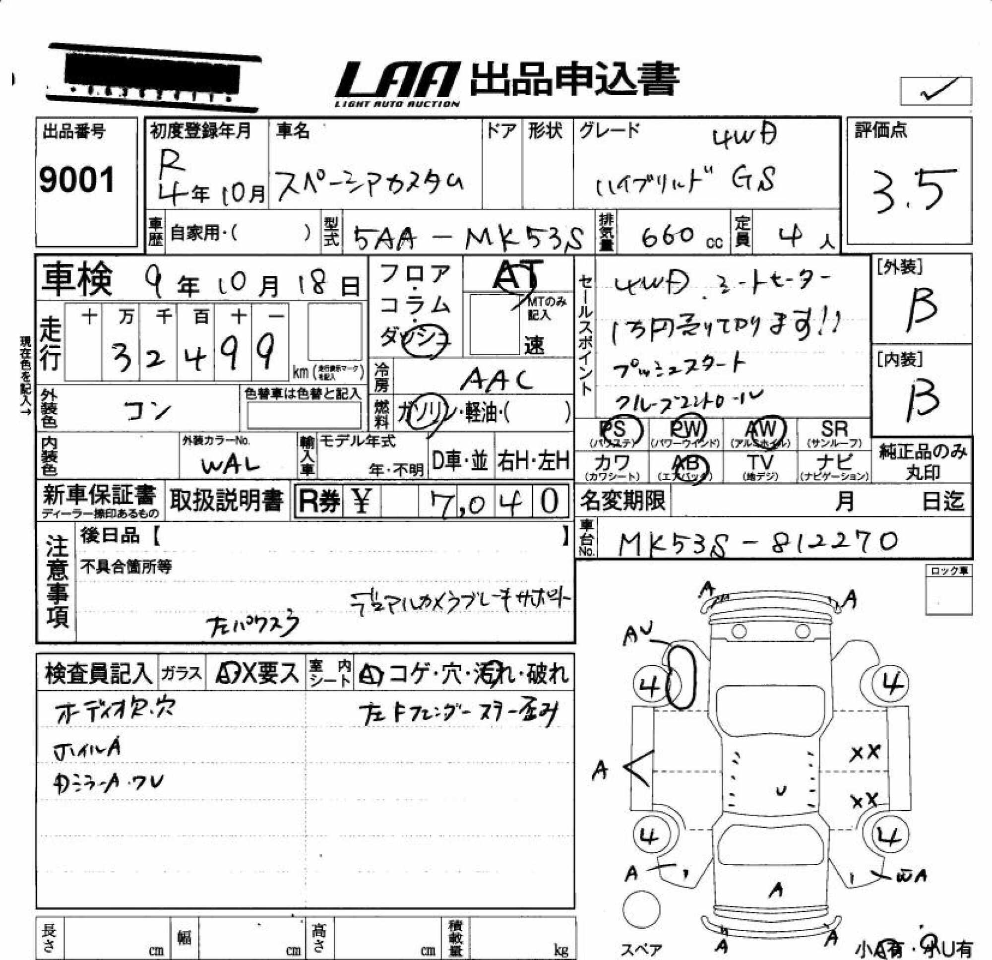 SUZUKI SPACIA CUSTOM - лот 9001