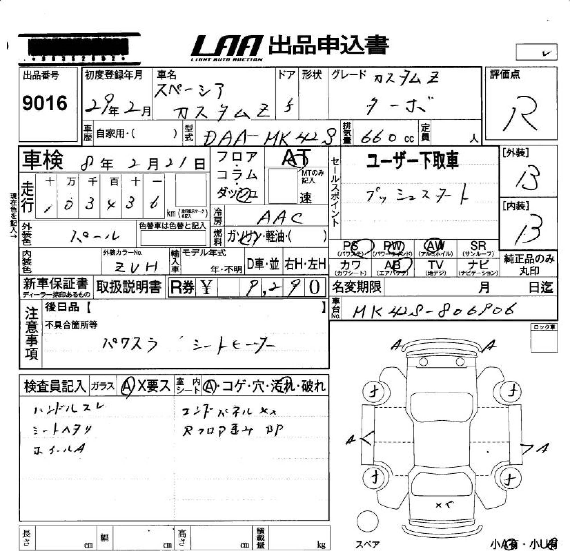 SUZUKI SPACIA CUSTOM - лот 9016
