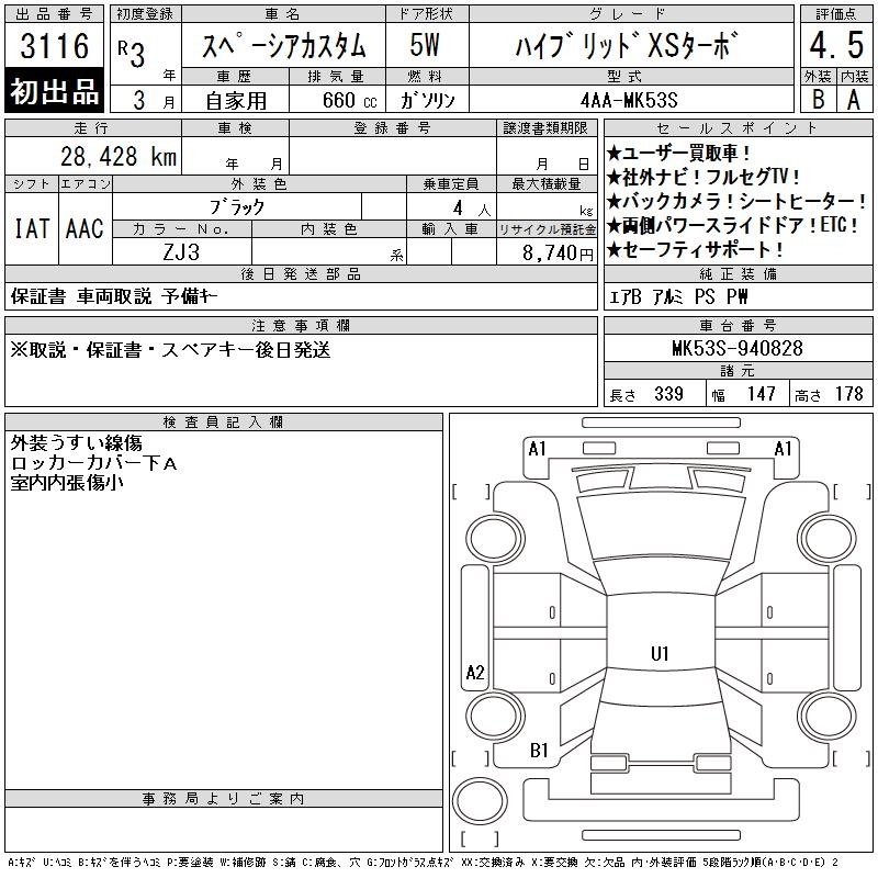 SUZUKI SPACIA CUSTOM - лот 3116