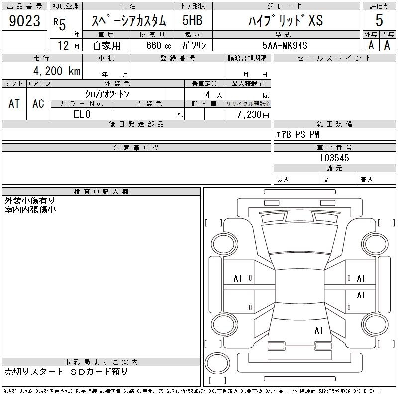 SUZUKI SPACIA CUSTOM - лот 9023