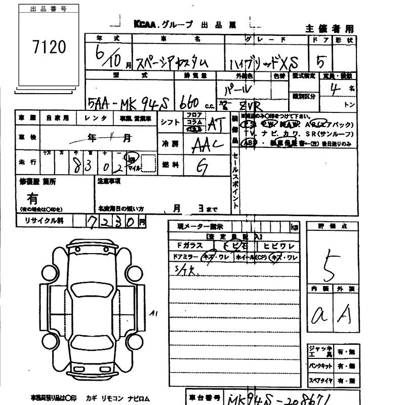 SUZUKI SPACIA CUSTOM - лот 7120