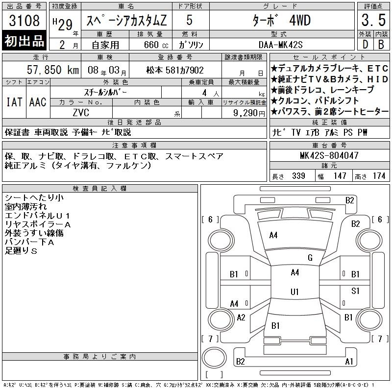 SUZUKI SPACIA CUSTOM - лот 3108