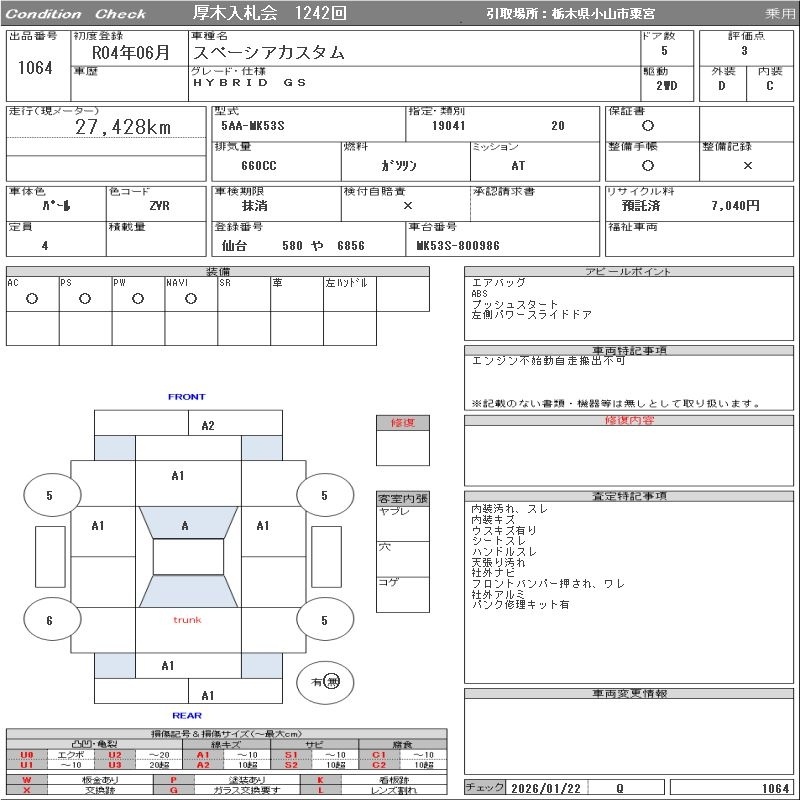SUZUKI SPACIA CUSTOM - лот 1064